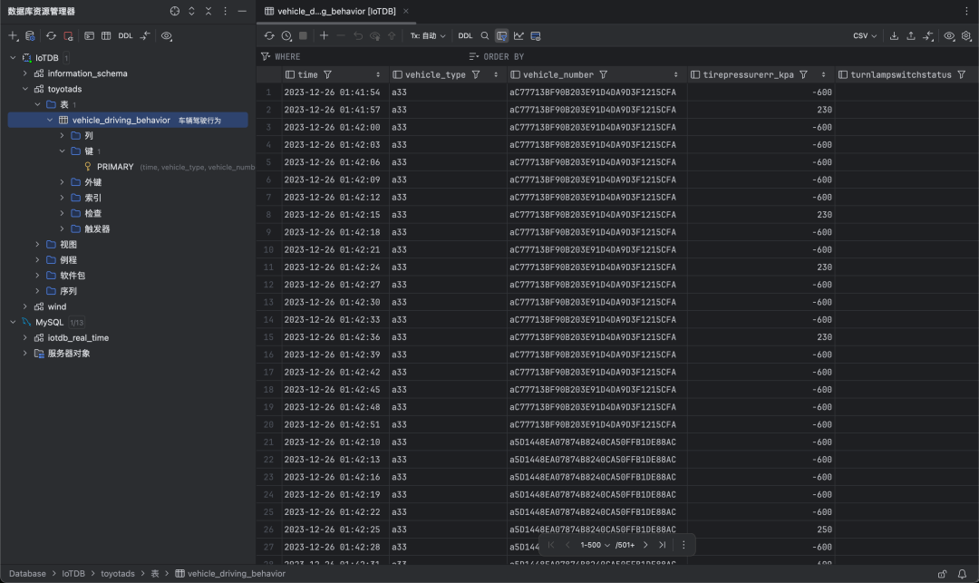 国产原生时序数据库 IoTDB 通过 JDBC 接口与数据库管理工具 DataGrip 集成,用户可直接通过 SQL 实现跨系统、多模态数据分析,为智能制造提供了全域数据协同能力。
