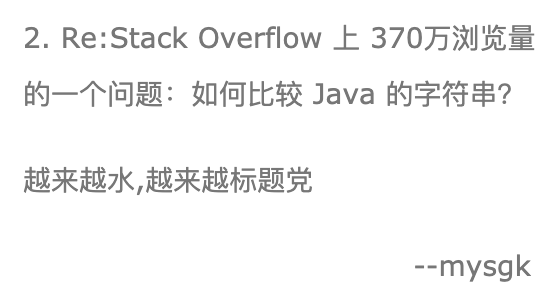 举个例子,自我批评一下。前几天我在某园上更新了一篇技术文,题目叫做《Stack Overflow 上 370万浏览量的一个问题:如何比较 Java 的字符串?》,我觉得写得蛮有趣的,蛮深入的。结果呢,被喷了,截图羞辱一下自己。
