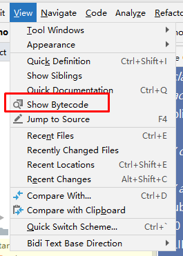 可以通过「View」中的「Show Bytecode」查看。