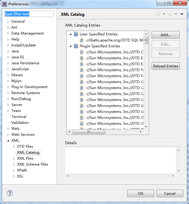 2.将http://ibatis.apache.org/dtd/sql-map-2.dtd下载到本地,然后将该文件放到项目的工作目录中,然后通过eclipse的本地dtd文件验证,进行操作,有以下步骤,点击