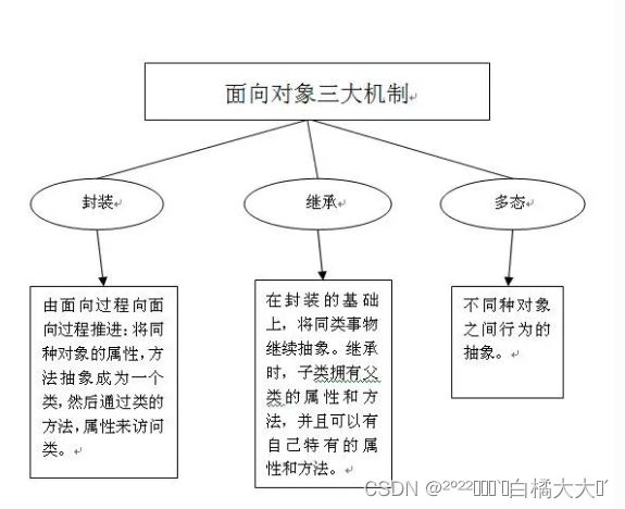 面向对象、将功能封装进对象,强调具备了功能的对象,以类/对象为最小单位,考虑谁来做。面向对象更加强调运用人类在日常得思维逻辑中采用的思维方法与原则,如抽象、分类、继承、聚合、多态。