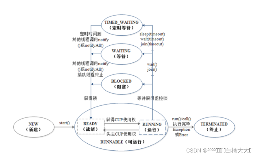- 调用了线程的 start()实例方法后,线程就处于就绪状态。
