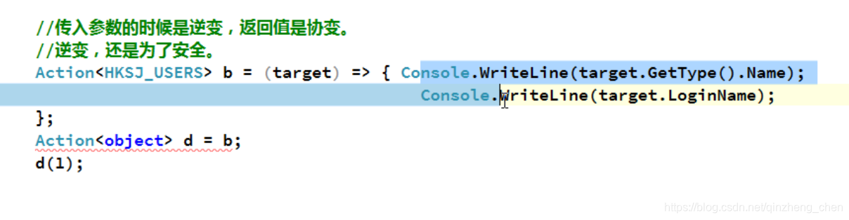 逆变针对委托:父类传给子类,在调用委托时,传入的参数是子类,调用的时候类型安全