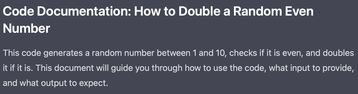 ChatGPT生成用户友好的文档,使其他贡献者能够轻松理解和使用我们的代码。这确保了文档的一致性,增加了所有用户的可及性。