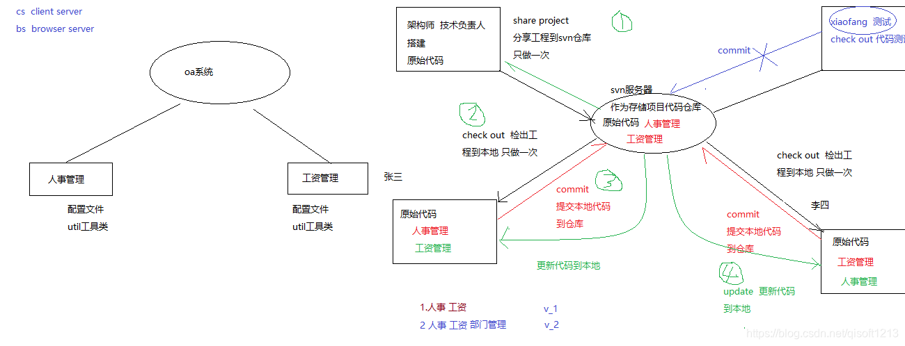 3.代码的备份 svn可以针对项目的工作节点存储不同版本的代码
