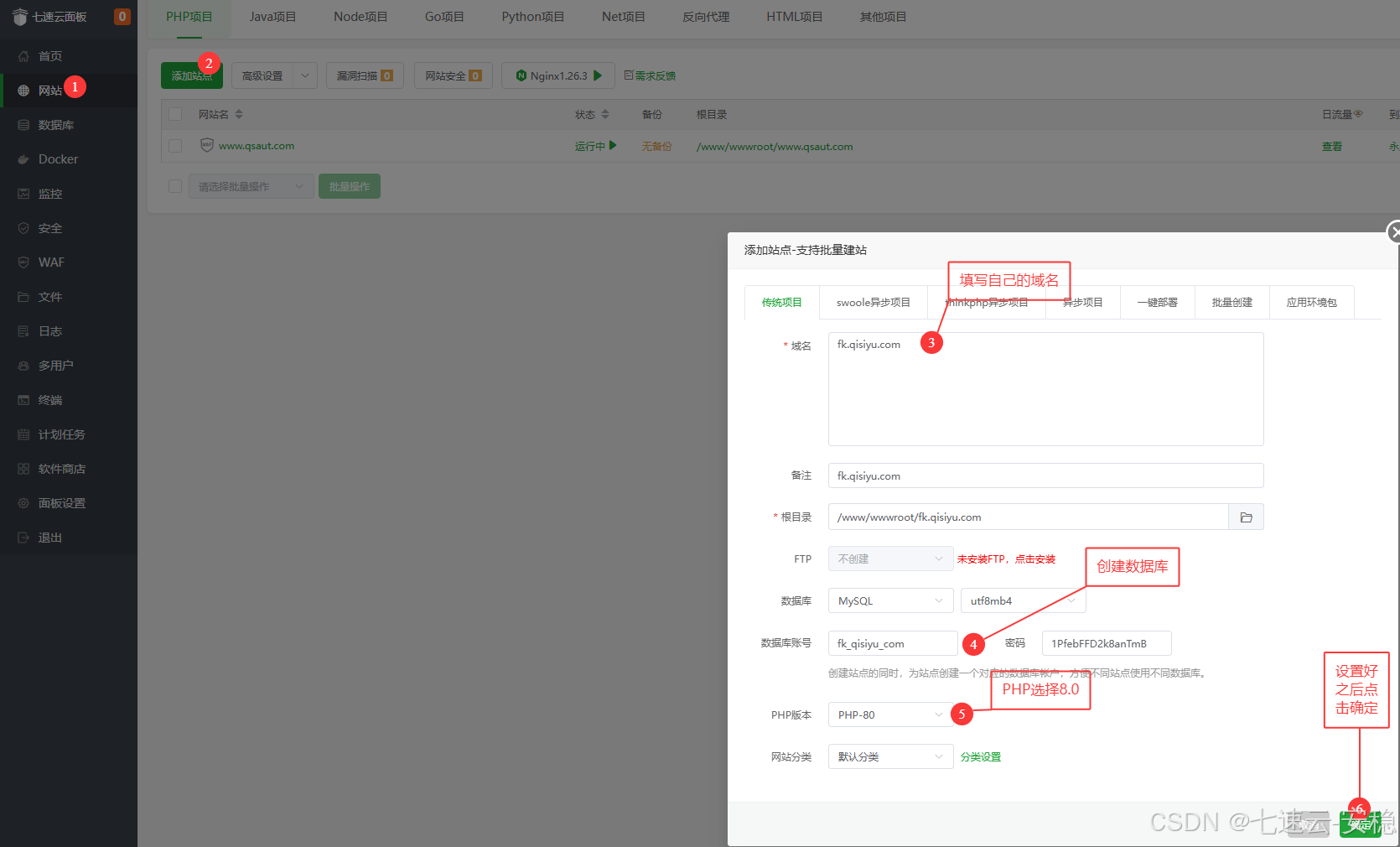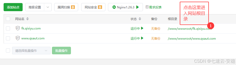 2、打开宝塔添加站点