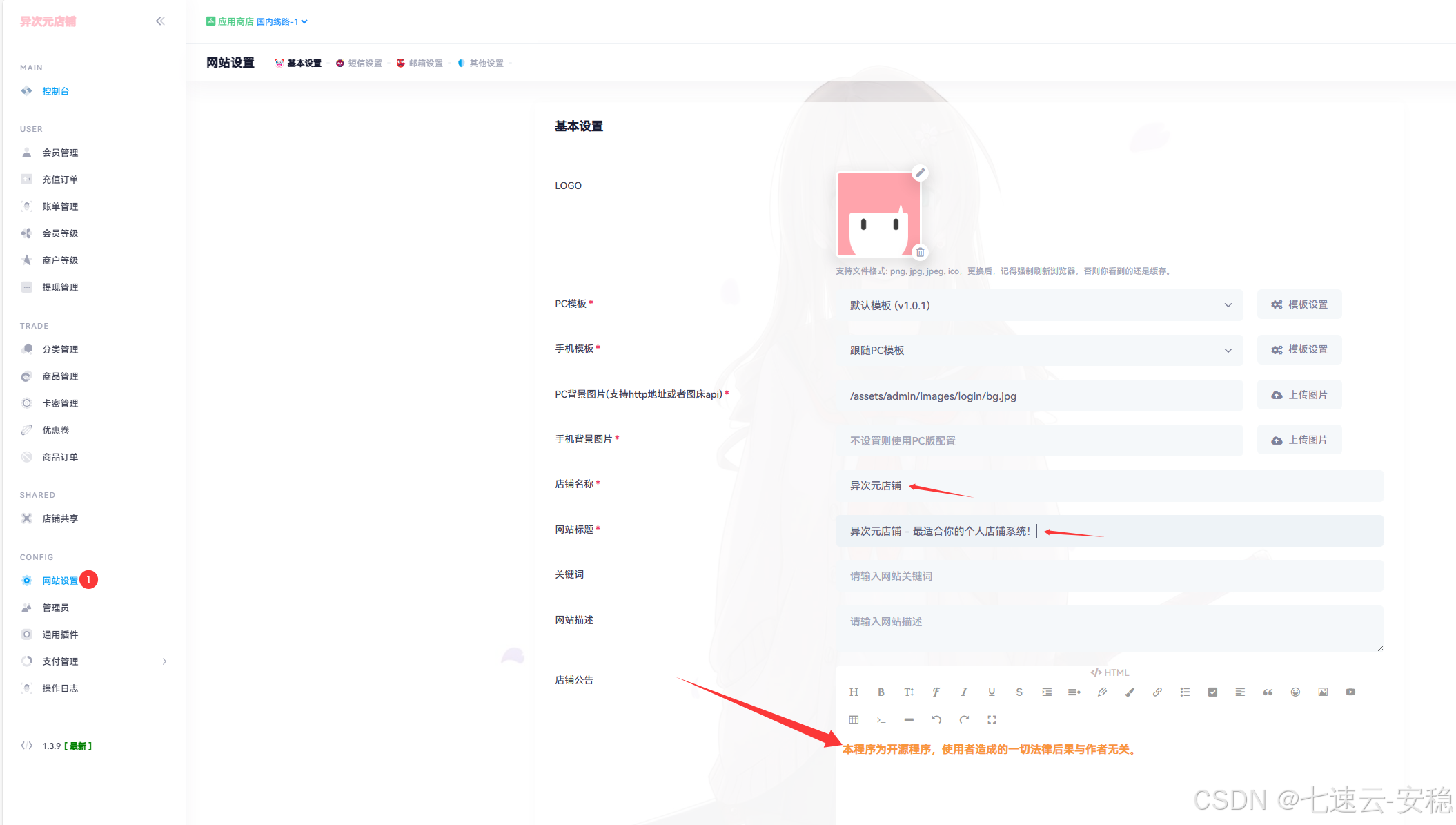 通过本教程,你已经成功搭建了异次元店铺系统,并完成了基础配置。异次元店铺系统凭借其强大的功能和灵活的扩展能力,能够满足各种在线商店的需求。无论是商品销售、会员管理,还是分站系统和推广代理,都能轻松实现。接下来,你可以根据需求进一步探索系统的更多功能,安装插件和模板,打造独一无二的在线商店。如果在使用过程中遇到问题,可以参考官方文档或社区支持。希望你的店铺运营顺利,生意兴隆!
