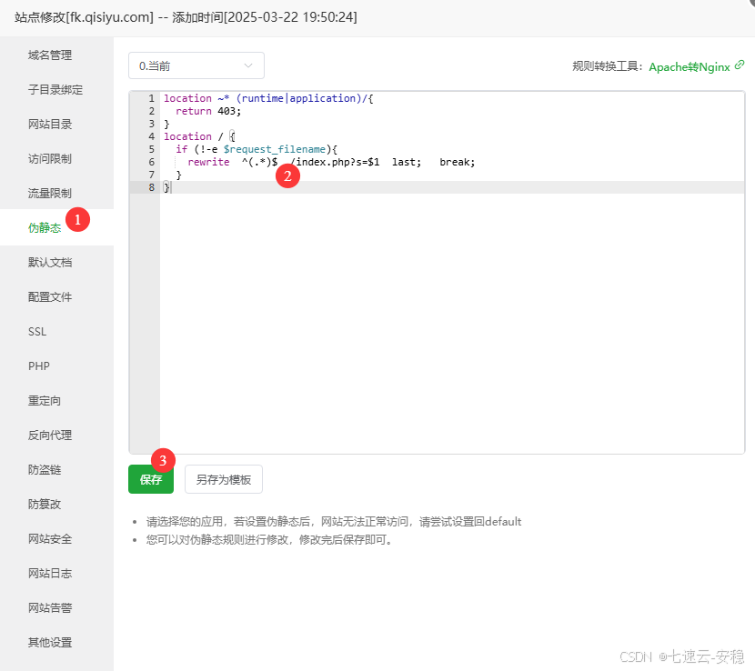 4、设置网站运行目录和设置伪静态