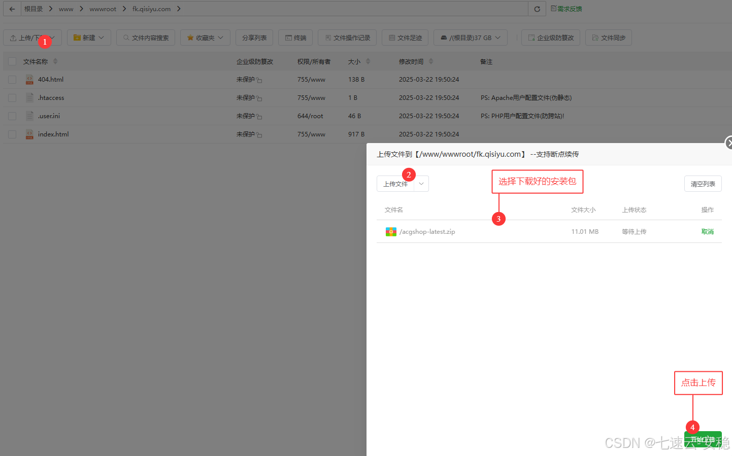 3、上传安装包