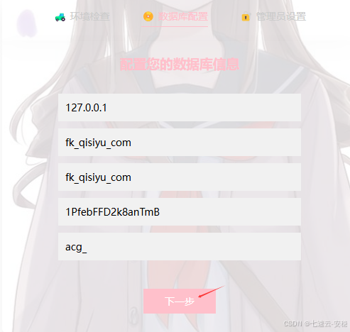 2.2、输入数据库信息
