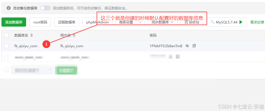 2.1、返回宝塔查看自己的数据库用户名和密码
