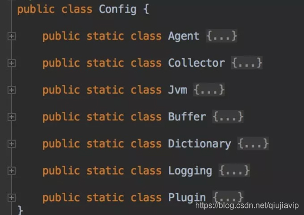 打开 Config ,我们会看到拆分了 Agent / Collector / Jvm / Buffer / Dictionary / Logging / Plugin 七个小类。如下图 :