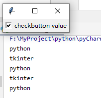 Checkbutton(root, variable = v, text = 'checkbutton value', onvalue = 'python', offvalue = 'tkinter',