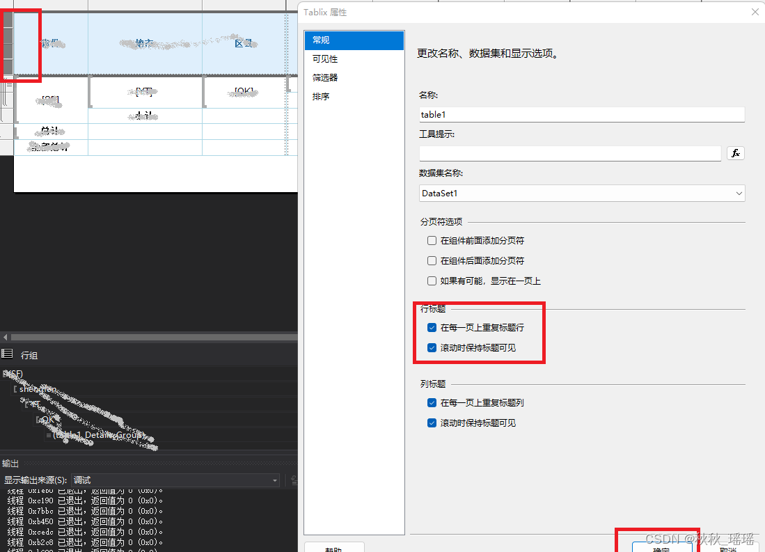 此时,有锁定表头的效果,但是如果有行分组的情况,我们会发现,鼠标拖动时,字会重叠,可以采取的办法是:将分组列中的单元格的背景设置为同色系(我这里用的白色),不要透明色,就可以了;第二个不要这个分组列锁定,可以去掉行标题设置,只设置列标题,也达到了锁定表头的效果。