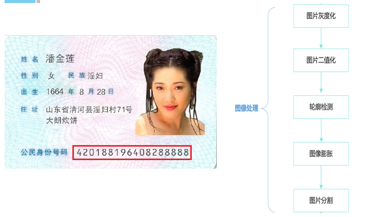 关键问题分析:找到号码所在区域→获取号码图片→识别身份证号码