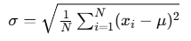 是每个数据点,μ是数据的平均值,N是数据点的总数。