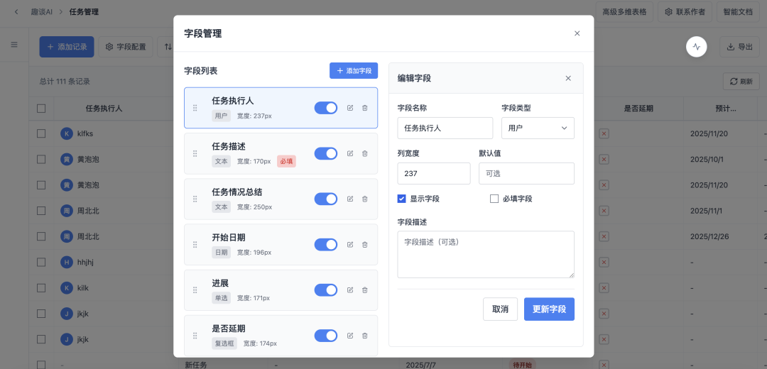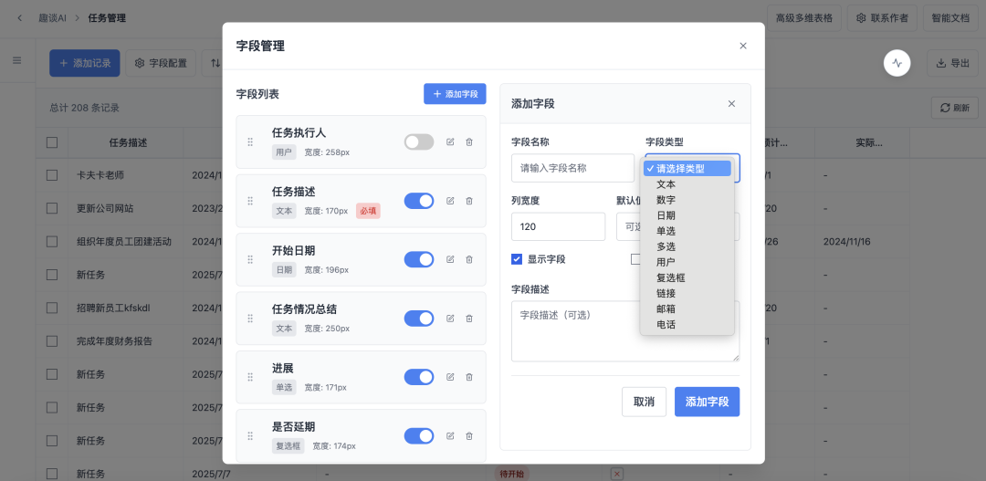 多维表格的字段管理功能