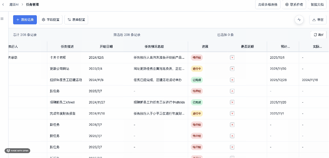 之前在 趣谈AI 公众号和大家分享了我花3个月编写的代码量接近 1w 行的多维表格,也收到了非常多粉丝的反馈:
