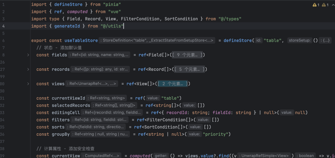 状态管理我统一维护在了 store.ts 文件中,同时使用 vue coder 们最熟悉的pina状态库。