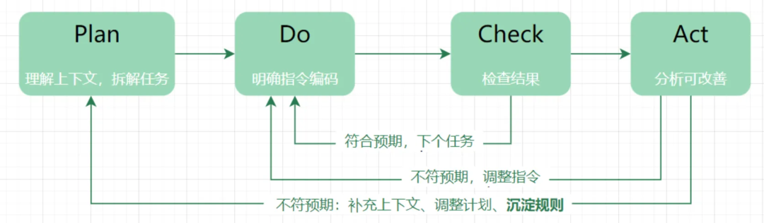 Plan 是单次循环中最重要的一步,类似 CoT,但是是人来主导和规划,AI 辅助,以保证达成目标路径的确定性。
