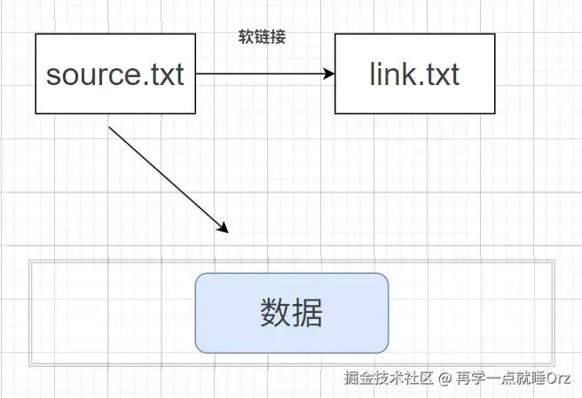 符号链接(又称软链接)是另一种链接机制,它不指向文件内容,而是指向 「原文件的路径」,类似 Windows 的 “快捷方式”,但更轻量(无额外属性)。
