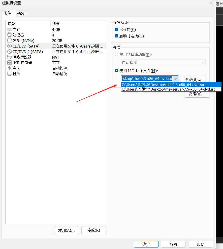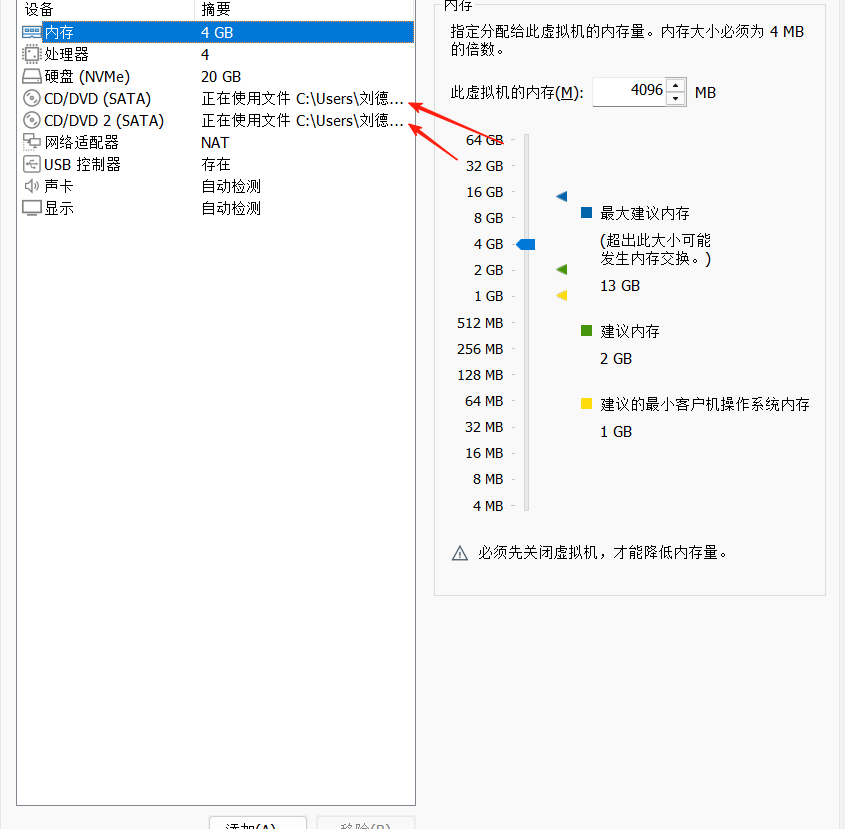 新创建的虚拟机都是CD/DVD没配置镜像,而CD/DVD配置了