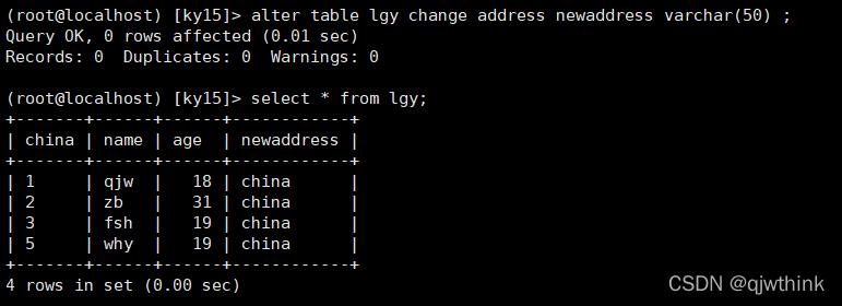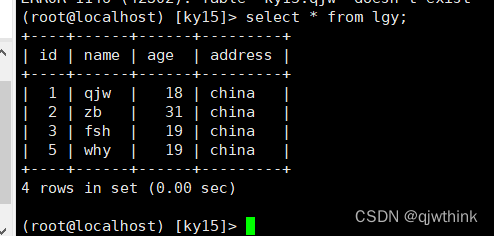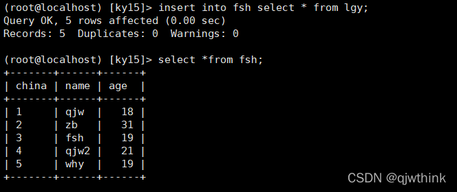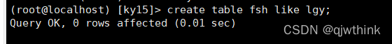 create table fsh like lgy;#复制格式,通过LIKE方法,复制lgy表结构生成fsh表