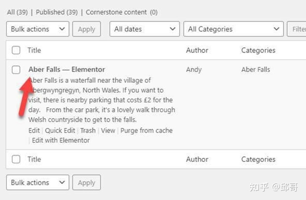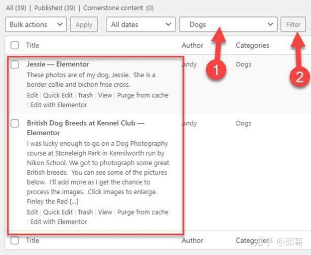 方法三:你也可以通过只显示某个类别内的文章来搜索某篇文章。从“所有类别”下拉框中选择想要的类别。选中后,点击Filter按钮。