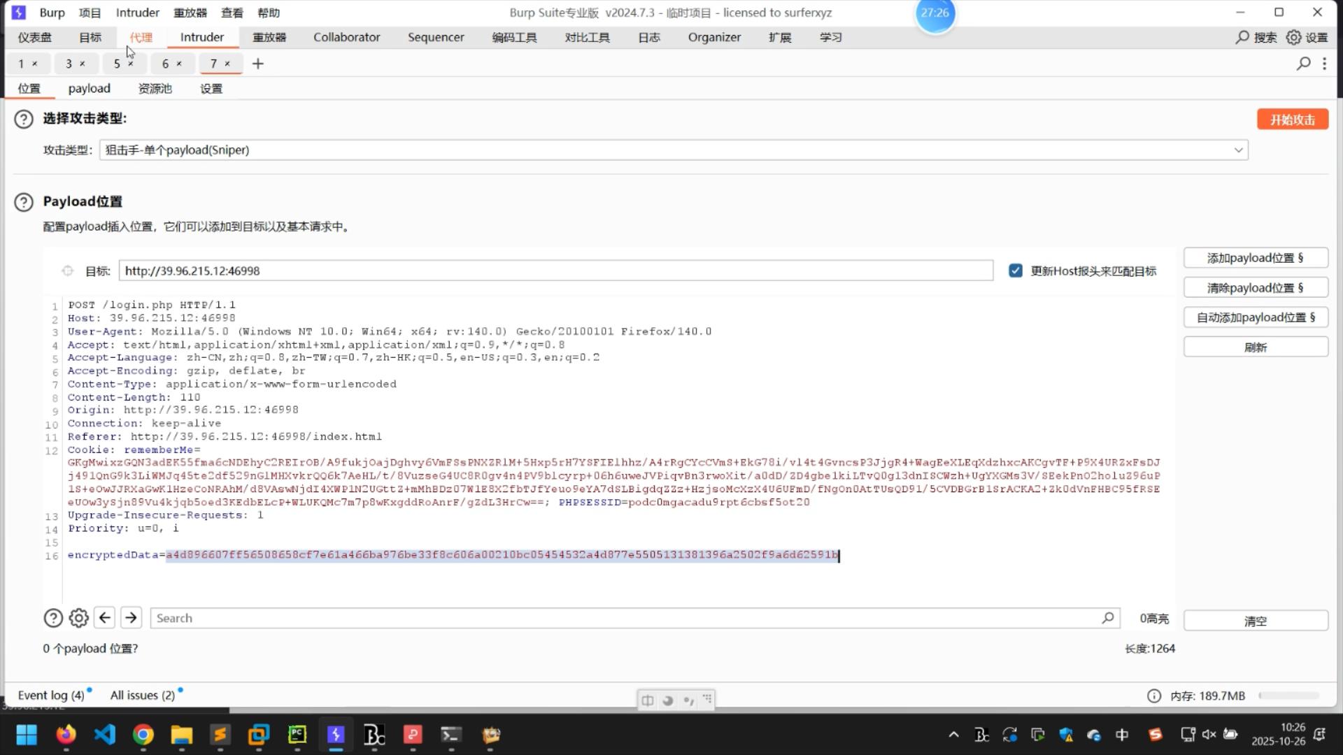是个web登录页面,burp抓取发现表单提交encryptedData。
