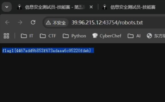 访问http://39.96.215.12:43754/robots.txt,得到flag1。