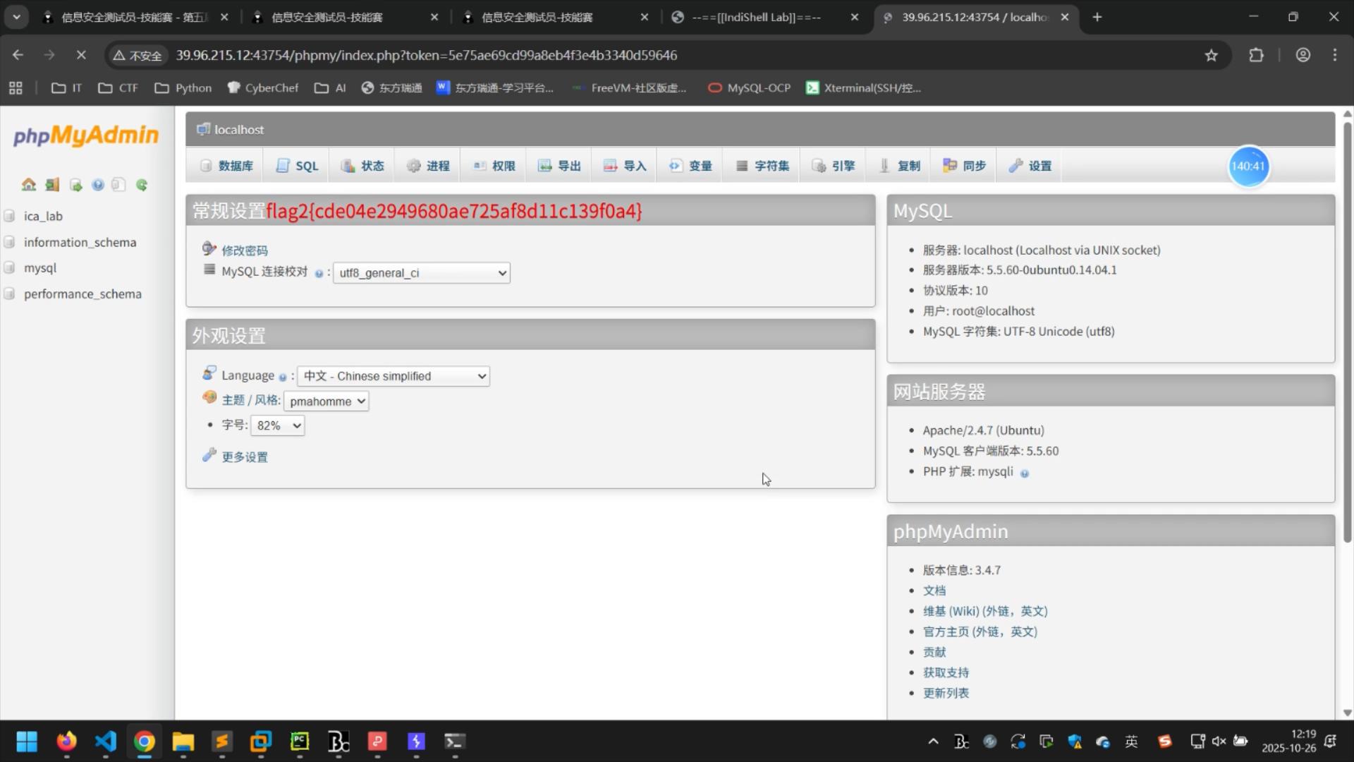 访问http://39.96.215.12:43754/phpmy/index.php,使用phpmyadmin的默认账号密码root、root登录得到flag2。