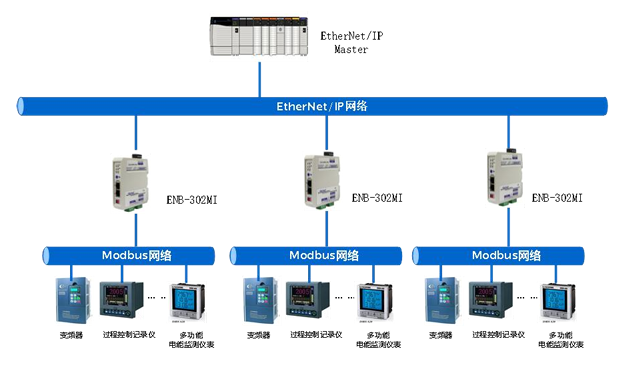 无论是将 Modbus 设备连接到 EtherNet/IP 网络,实现带有 EtherNet/IP 接口的 PLC(或 PC)与 Modbus 设备的相互通信,还是应对更复杂的工业网络架构,ENB-302MI 都能游刃有余。