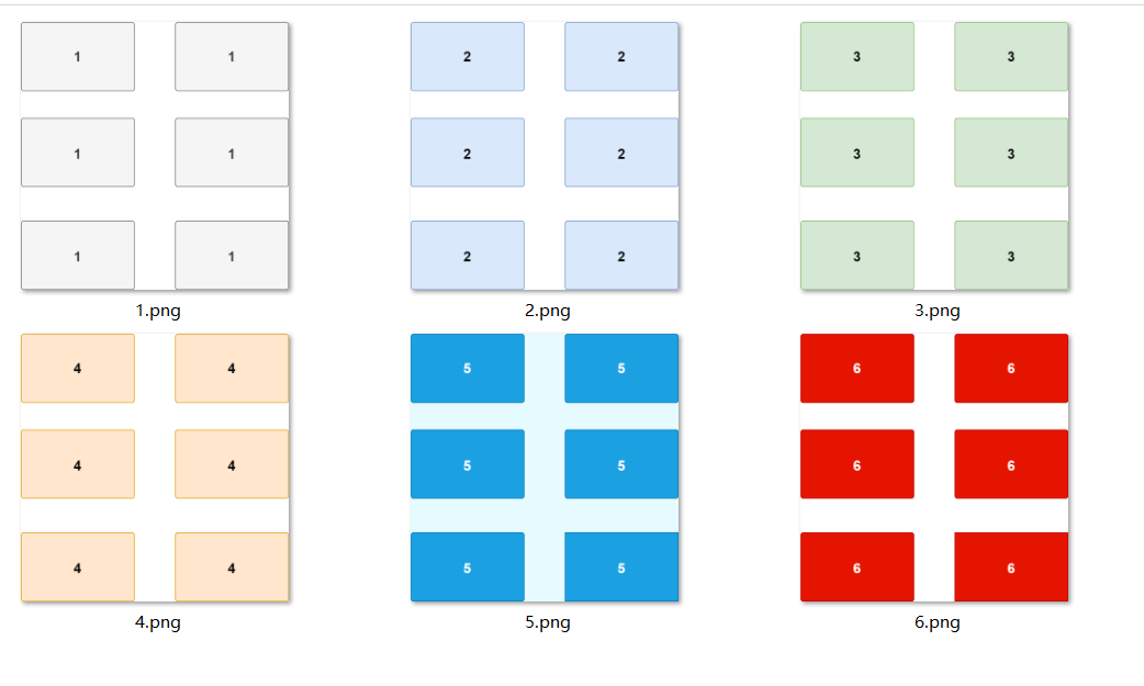 天空盒子纹理通常是一个立方体贴图(Cube Map),它包含了六个面的纹理图像。准备了六张图片,图片自己画上数字分别是12346。观察点是在立方体内面或是中心点,就像进入到房间后关门,能看到的范围。这就是作为背景环境纹理。图片如下: