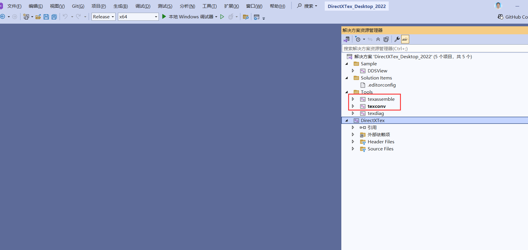 选择编译DirectXTex_Desktop_2019.sln或DirectXTex_Desktop_2022.sln