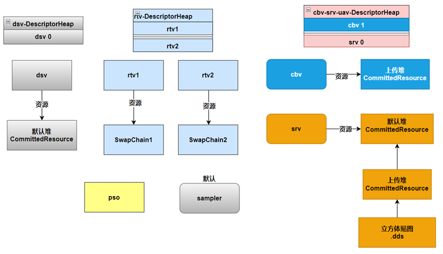 3.CBV与SRV,共用一个描述符堆,SRV的资源必须是默认堆资源(位GPU上),CBV的资源可以是上传堆(简单化)