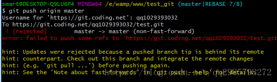 2.如果推送失败,则因为远程分支比你的本地更新,需要先用git pull试图合并;