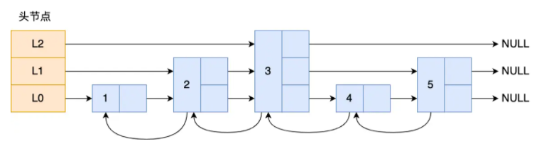 1.在链表的基础上改进而来的,是一种多层的有序链表。查找的平均时间复杂度为O(logN)