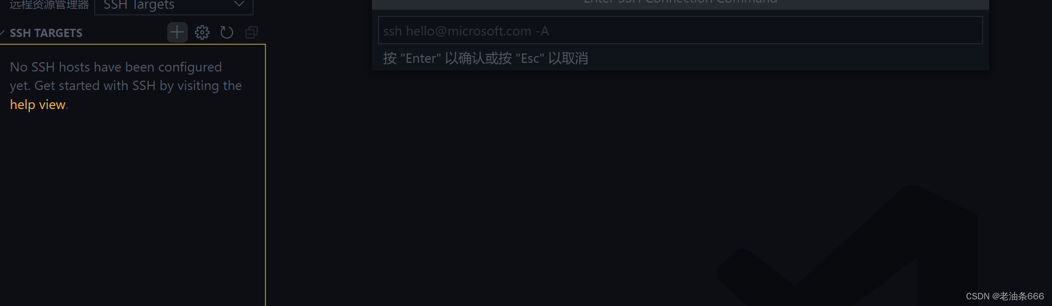 4、返回vscode里面的Remote SSH插件,点击下图中的那个+号进行设置: