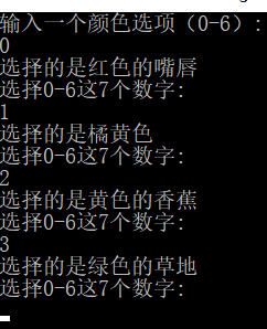 cout << "输入一个颜色选项(0-6):\n";