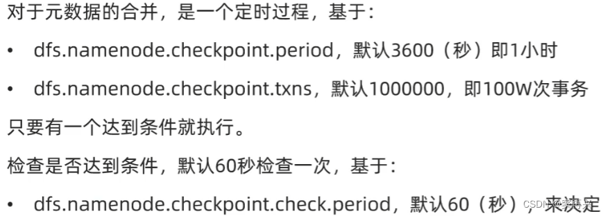 主角色辅助角色:SecondaryNameNode (是一个独立的进程,协助主角色合并元数据,这就是它唯一的作用;老板秘书)