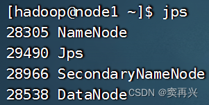 启动后,输入 jps,node1 有这些,node2/3 只有 DataNode