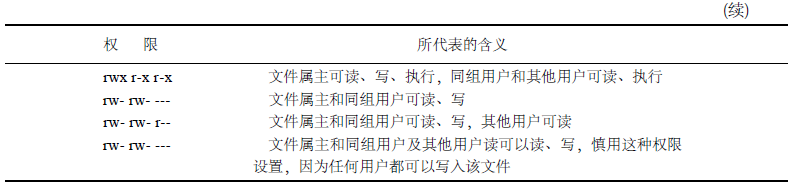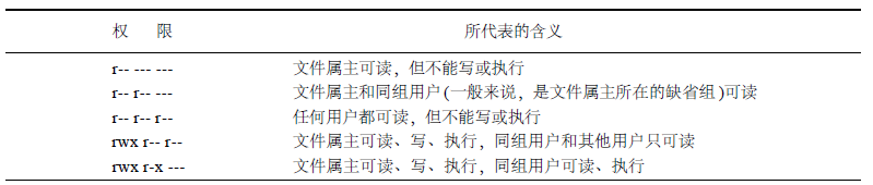 上面这段关于权限位的内容可能不太好理解,让我们来看几个例子(见表1 - 2 )。
