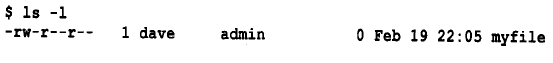 接下来的三个权限位是文件属主所具有的权限;再接下来的三位是与你同组用户所具有的权限,这里是a d m i n组;最后三位是其他用户所具有的权限。在该命令的结果中,我所属于的缺省组也显示了出来。下面是对该文件权限的精确描述: