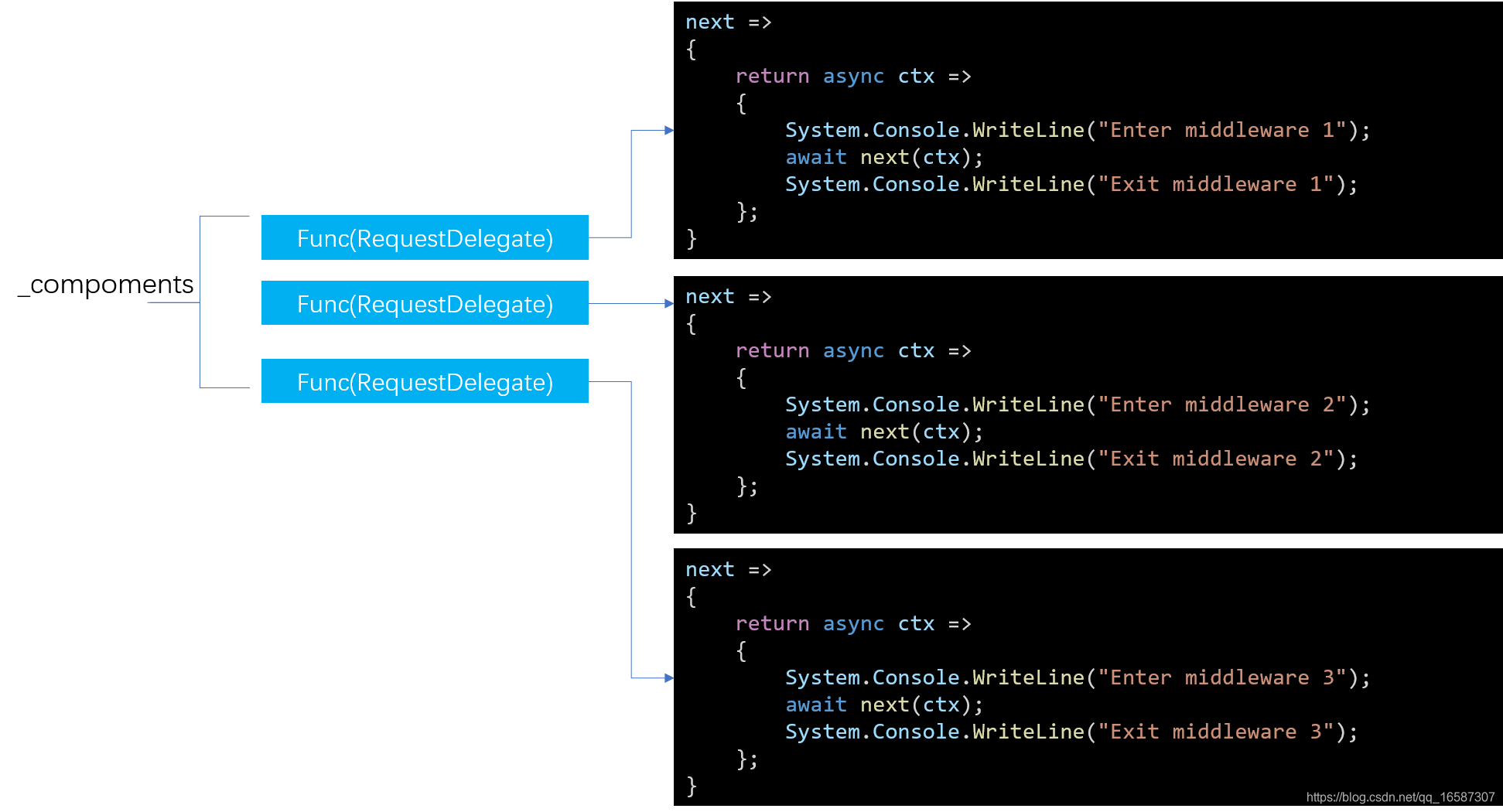 private readonly IList<Func<RequestDelegate, RequestDelegate>> _components = new List<Func<RequestDelegate, RequestDelegate>>();