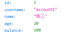 {"id":1,"username":"account1","name":"张三","age":20,"balance":100.00}