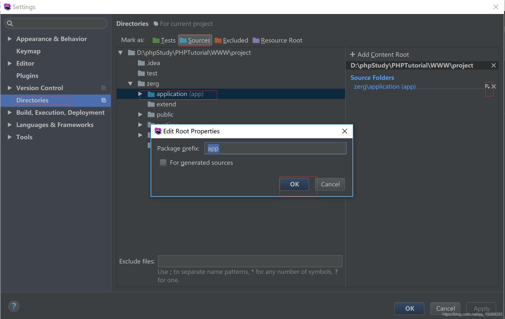 第一步:进入phpstorm的设置,使用快捷键ctrl+shift+s,搜索Directories,选择你所在的项目application选中为Sources,点击右边的p下标,在弹出框写上app,保存。