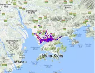 地图中,我们可以看到不同颜色的点,代表不同的出租车数量,颜色越深,代表数量越少,颜色越浅,代表数量越多,从上面的地图上我们可以发现,在深圳市中大部分的出租车停靠在西北方向。而少部分的出租车停靠在深圳市的南部。
