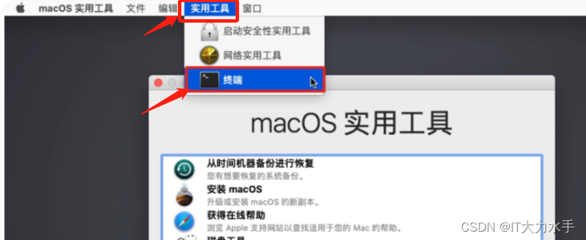 3、然后在左上角实用工具中打开「终端」;