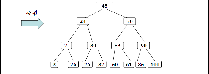 (3)非叶结点是由叶结点分裂而来的,所以叶结点关键字个数也满足[[m/2]-1,m-1];