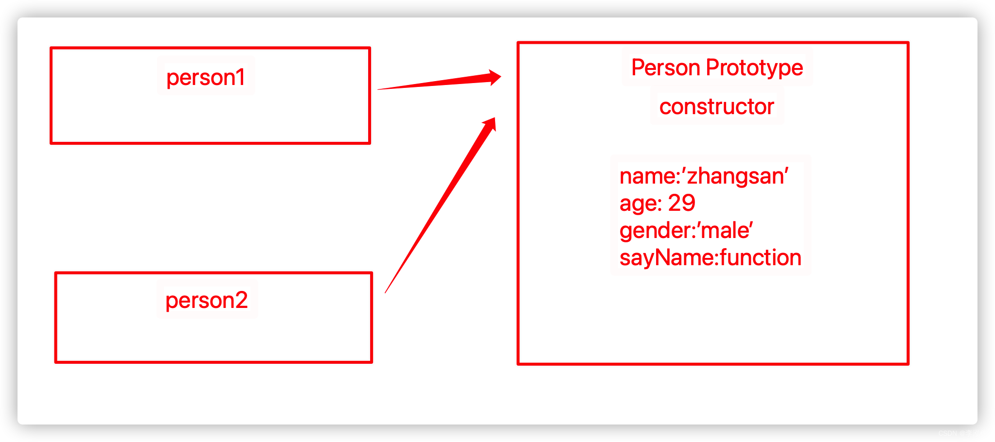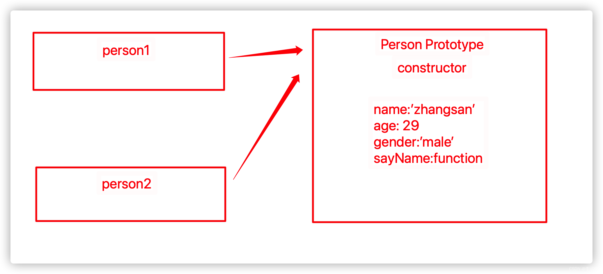 person1 和 person2 分别保存着 Person 的不同实例。所有对象都会从它的原型上继承一个 constructor 属性,这两个对象的constructor 属性指向 Person,